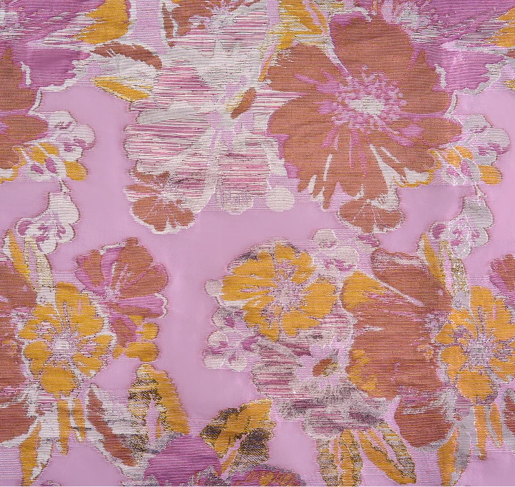 I tessuti fil coupé Jacquard prendono forma da una lavorazione che prevede l’inserimento di fili flottanti durante la tessitura. In fase di finissaggio, questi fili vengono tagliati (coupé), creando disegni in rilievo e un effetto di leggerezza quasi impalpabile.